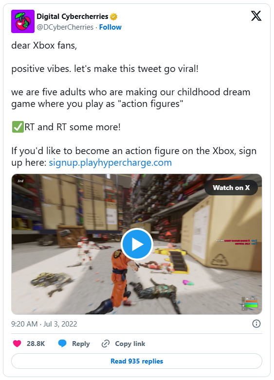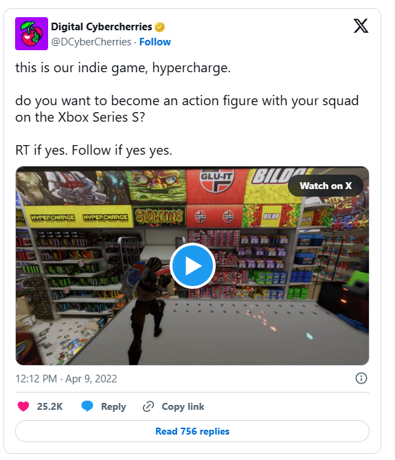 As I mentioned, Hypercharge was released on Switch and PC, but Joe had a hunch it would do well on XBOX too. So in April 2022, he saw Xbox Series S was trending. So he jumped on it and send this twitter
