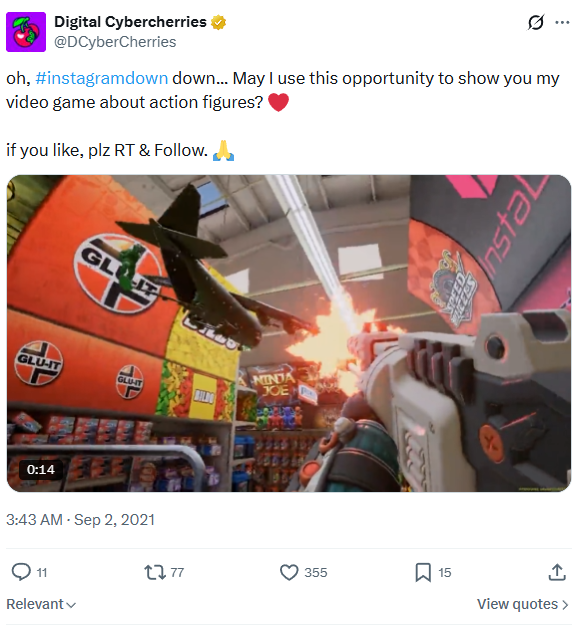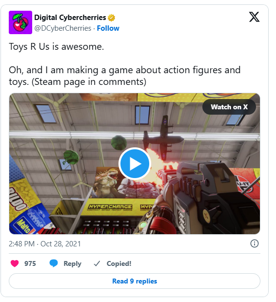 Toys R Us was trending and Joe’s game is all about toys fighting in a toy store. So he wrote a tweet addressing this topic.