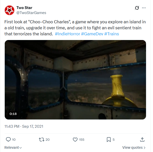 Yes I know Choo Choo Charles succeeded as an “open world” horror game, but that developer had made smaller horror games first like My Beautiful Paper Smile and Night in Riverager.