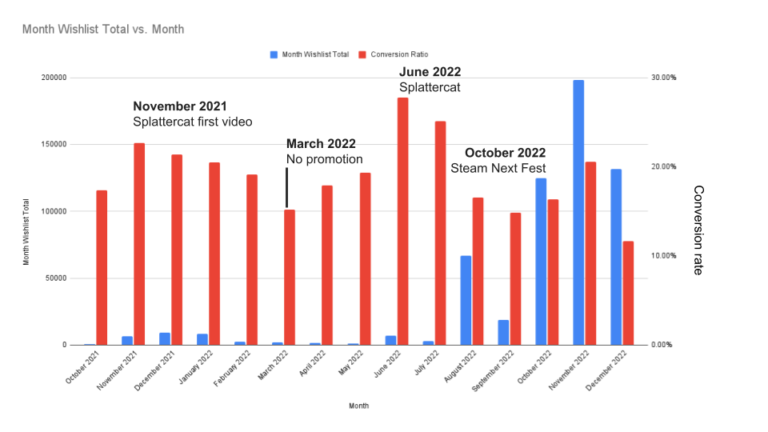 The ghost story: If I reach out to a content creator too early and they play my game they will be satisfied and then won’t play it again when I really need their support during the launch of my game. Also, that boost in attention they give me early in development will quickly fade because …. WISHLISTS! GET! OLD!