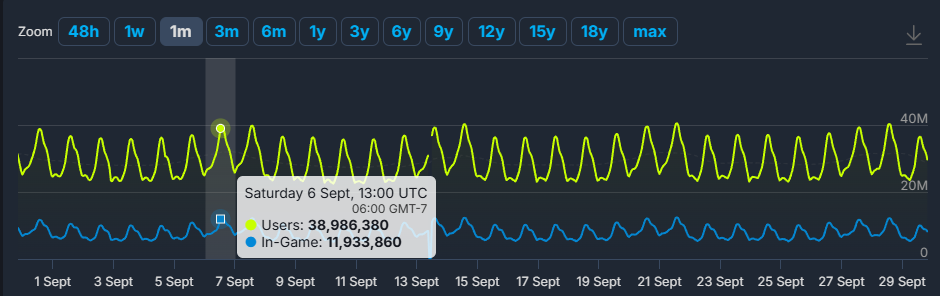 That sounds like a huge number but on that same day, there were 11,933,860 people playing other random games on Steam overall.