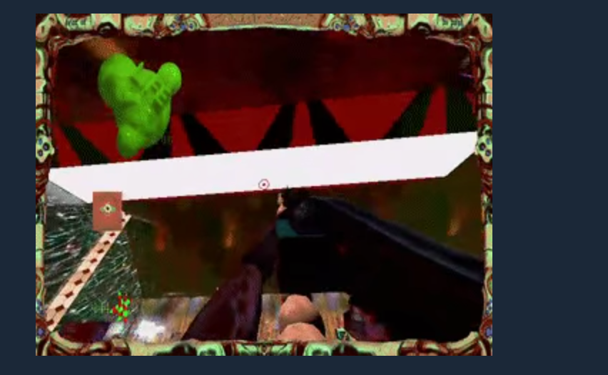 This is important. If you see a “bad looking game” you need to determine if the game is made by someone with a professional art degree who is doing that as a commentary on the modern techno-state. Cruelty Squad is made by Ville Kallio who is a Finnish visual artist who also exhibits art at galleries and has a whole merch line. Ville has a deliberate practiced aesthetic (that I think looks really cool. I like it. He seems cool)