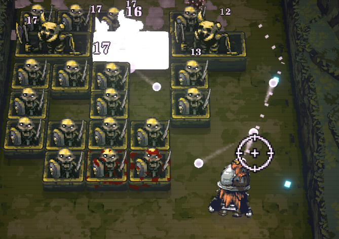 BALL x PIT has bloody, rotting skeletons, with broken horns, holding rusty swords and battleaxes, and numbers flying all over everything. Steam likes it DAAAAAAANK.