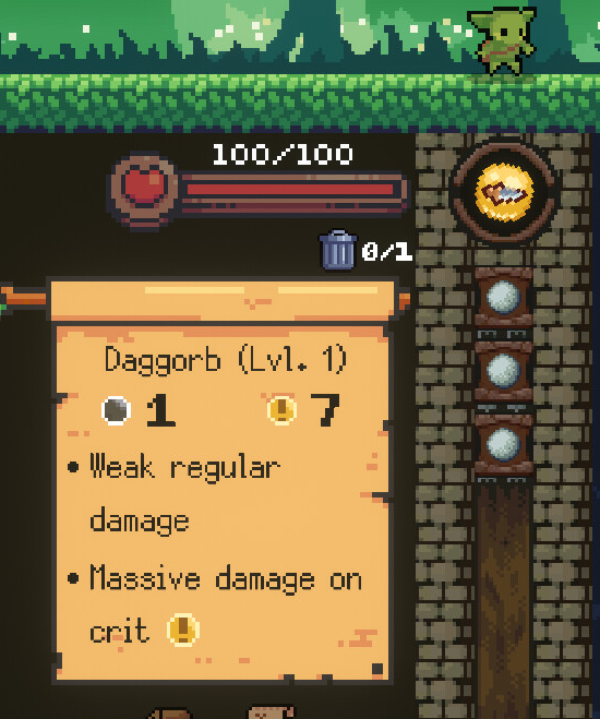 Key innovation adapted from the Peglin: During runs you randomly are given orbs which have unique special abilities that must be managed for strategic gains.