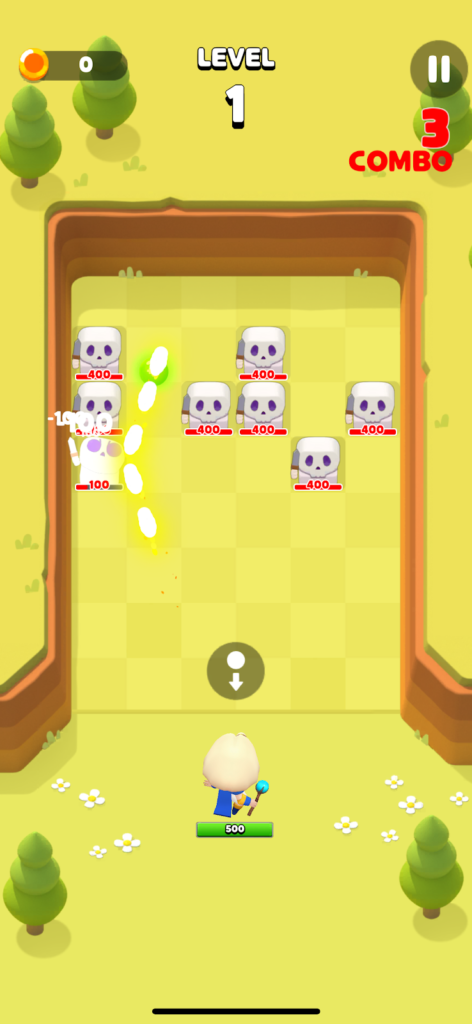 At the beginning you don’t have many power ups so your balls don’t do much damage. Your characters default stats are weak. You quickly get overrun by enemies.
