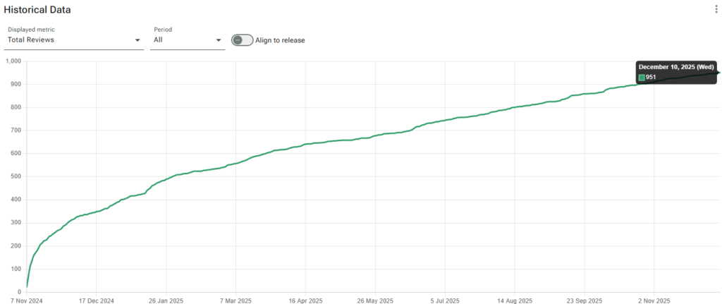 Here is their 1 year wishlist chart. ALMOST reaching 1000 reviews. Will probably do it after the winter sale.