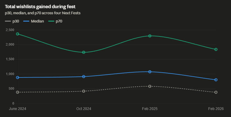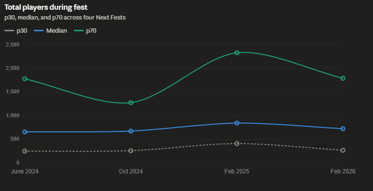 But, I just don’t see that much change this Next Fest. There were more games, but overall the performance matched the years post October 2024. This is still the meta same as before