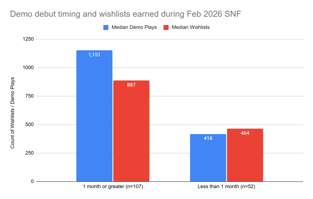 Similarly, if you look across the data, games that launched their demo more than 1 month before Steam Next Fest did much better than the sub 1-month games.