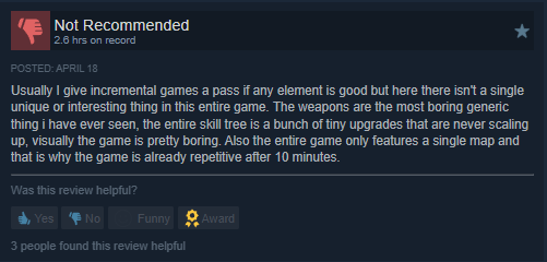 Reviews are generally positive. Players like the short simple version of it. It is consumable. There is a desire for more variety however.